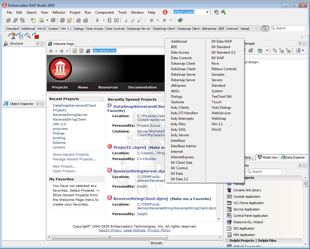 Muitos desenvolvedores gostam da barra de componentes do Delphi 7/C++Builder 6 e consideram isso como uma barreira para não migrar para as novas versões. No RAD Studio 2010 você pode agora usar a antiga barra de componentes e/ou o novo Tool Pallete.